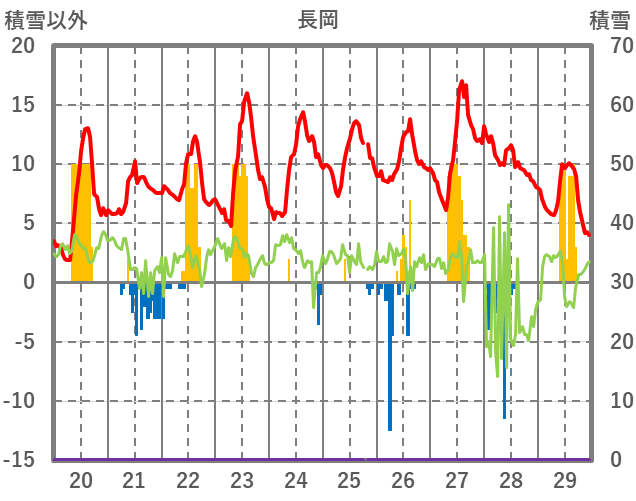 | 日 | 時 | 気温 | 降水 | 風向/風速 | 日照 | 積雪 | 降雪 |