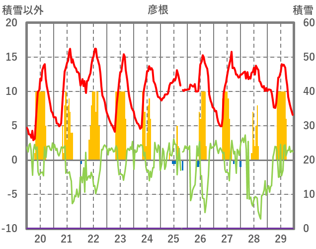 | 日 | 時 | 気温 | 降水 | 風向/風速 | 日照 | 積雪 | 降雪 |