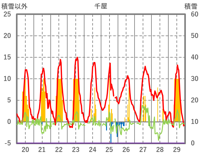 | 日 | 時 | 気温 | 降水 | 風向/風速 | 日照 | 積雪 | 降雪 |