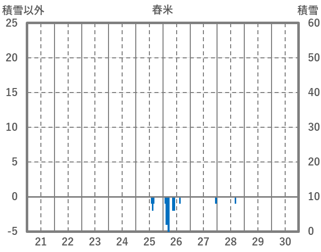 | 日 | 時 | 気温 | 降水 | 風向/風速 | 日照 | 積雪 | 降雪 |