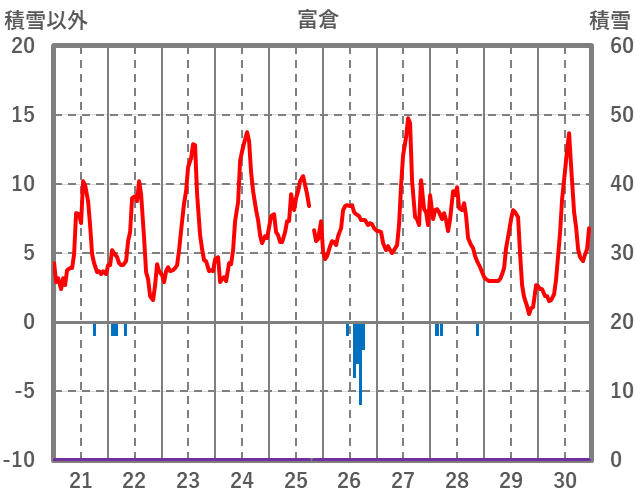 | 日 | 時 | 気温 | 降水 | 風向/風速 | 日照 | 積雪 | 降雪 |