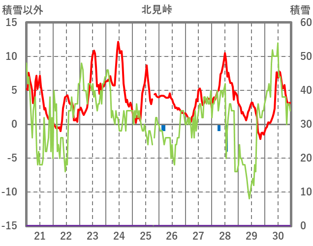 | 日 | 時 | 気温 | 降水 | 風向/風速 | 日照 | 積雪 | 降雪 |