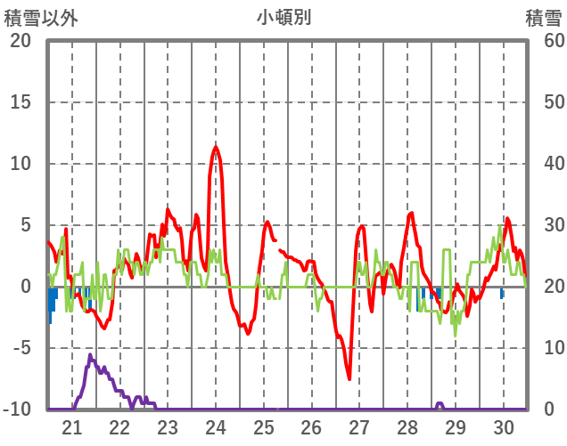 | 日 | 時 | 気温 | 降水 | 風向/風速 | 日照 | 積雪 | 降雪 |