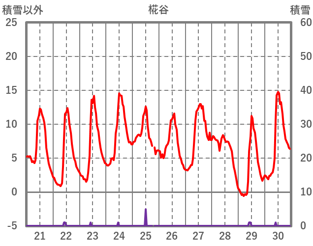 | 日 | 時 | 気温 | 降水 | 風向/風速 | 日照 | 積雪 | 降雪 |