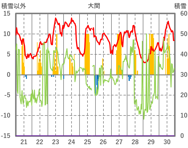 | 日 | 時 | 気温 | 降水 | 風向/風速 | 日照 | 積雪 | 降雪 |