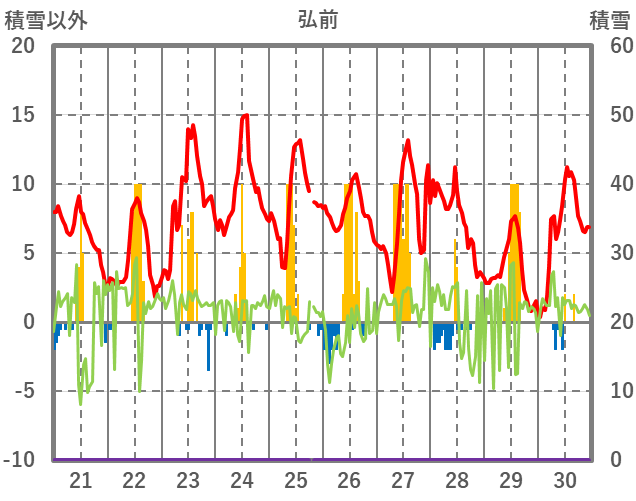 | 日 | 時 | 気温 | 降水 | 風向/風速 | 日照 | 積雪 | 降雪 |