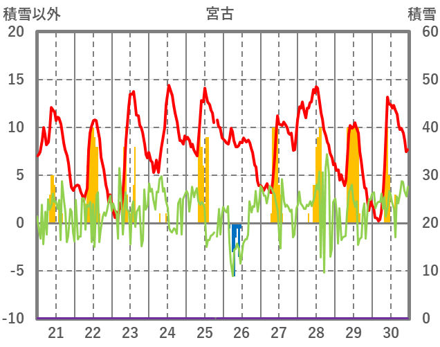 | 日 | 時 | 気温 | 降水 | 風向/風速 | 日照 | 積雪 | 降雪 |