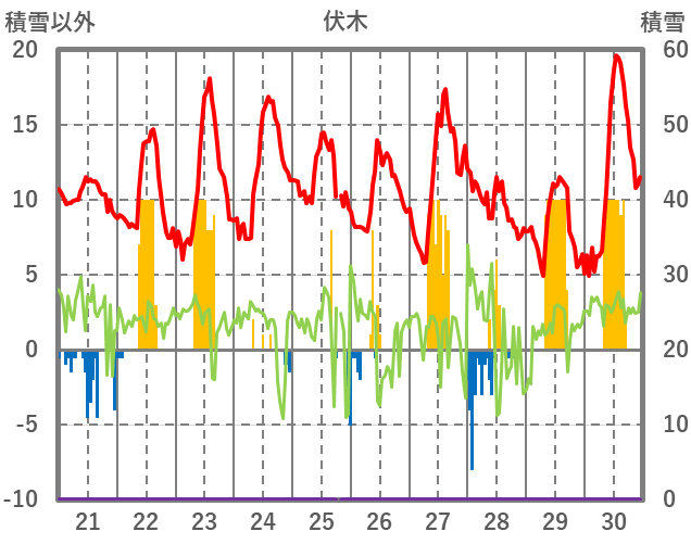 | 日 | 時 | 気温 | 降水 | 風向/風速 | 日照 | 積雪 | 降雪 |