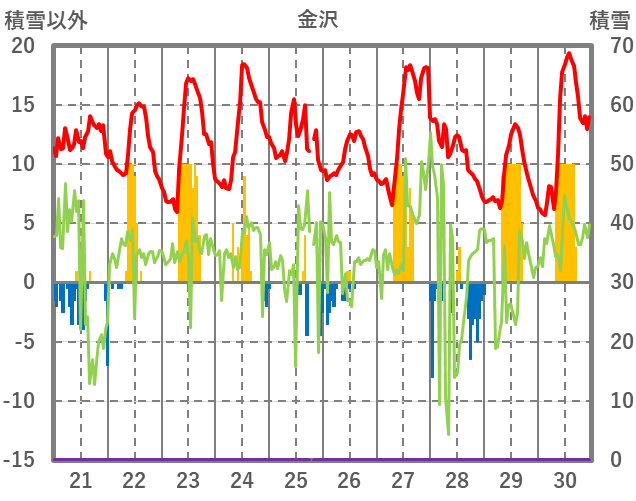 | 日 | 時 | 気温 | 降水 | 風向/風速 | 日照 | 積雪 | 降雪 |