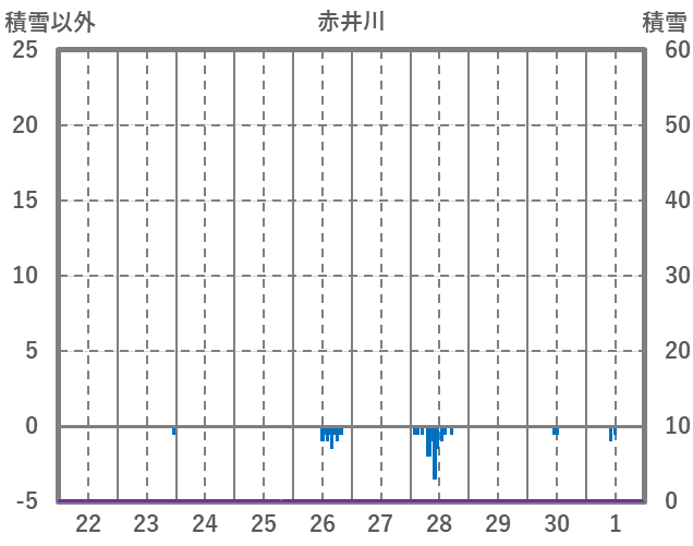 | 日 | 時 | 気温 | 降水 | 風向/風速 | 日照 | 積雪 | 降雪 |