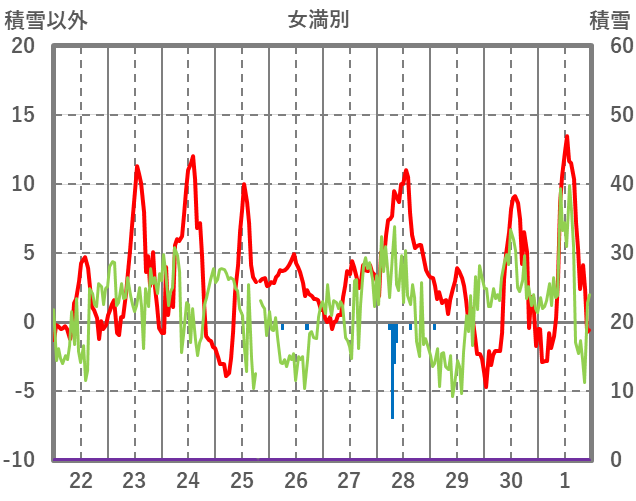 | 日 | 時 | 気温 | 降水 | 風向/風速 | 日照 | 積雪 | 降雪 |