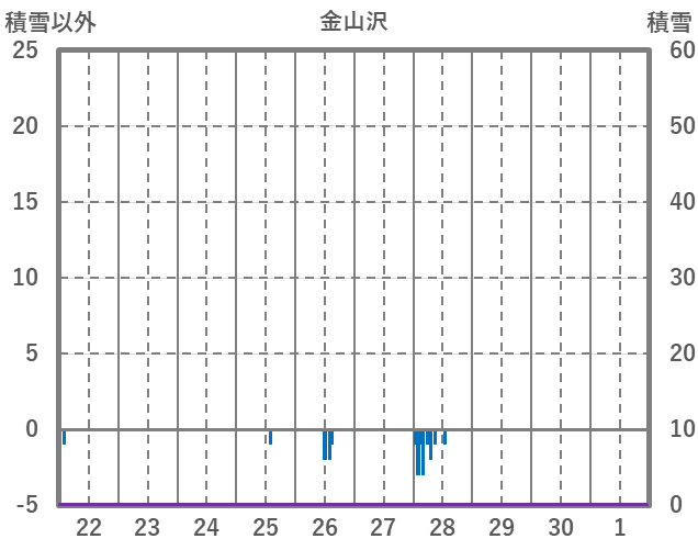 | 日 | 時 | 気温 | 降水 | 風向/風速 | 日照 | 積雪 | 降雪 |