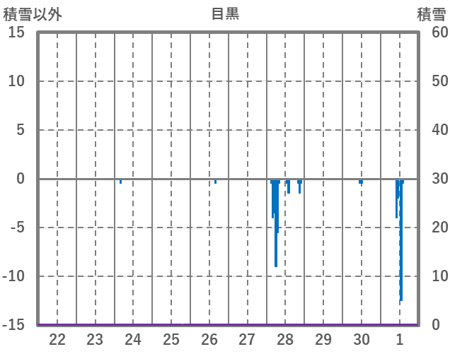 | 日 | 時 | 気温 | 降水 | 風向/風速 | 日照 | 積雪 | 降雪 |