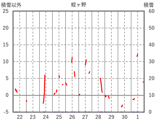 | 日 | 時 | 気温 | 降水 | 風向/風速 | 日照 | 積雪 | 降雪 |