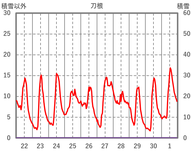 | 日 | 時 | 気温 | 降水 | 風向/風速 | 日照 | 積雪 | 降雪 |