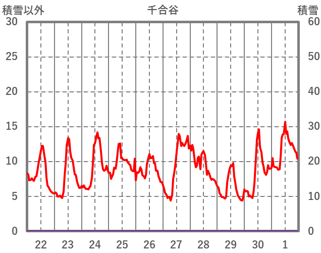 | 日 | 時 | 気温 | 降水 | 風向/風速 | 日照 | 積雪 | 降雪 |
