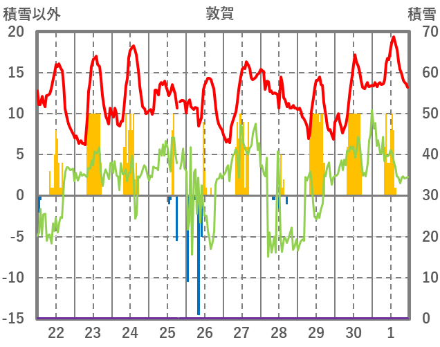 | 日 | 時 | 気温 | 降水 | 風向/風速 | 日照 | 積雪 | 降雪 |