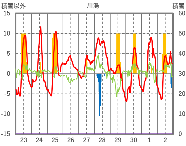 | 日 | 時 | 気温 | 降水 | 風向/風速 | 日照 | 積雪 | 降雪 |