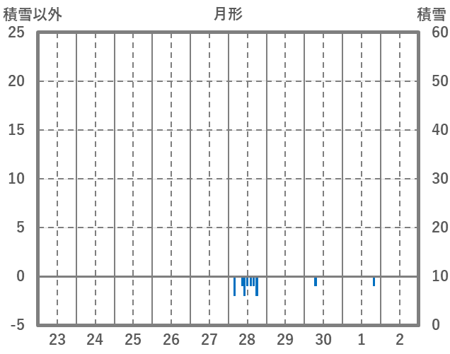 | 日 | 時 | 気温 | 降水 | 風向/風速 | 日照 | 積雪 | 降雪 |