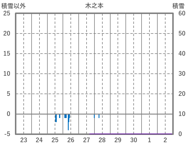 | 日 | 時 | 気温 | 降水 | 風向/風速 | 日照 | 積雪 | 降雪 |
