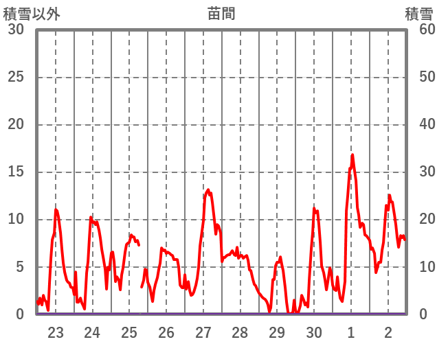 | 日 | 時 | 気温 | 降水 | 風向/風速 | 日照 | 積雪 | 降雪 |