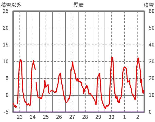 | 日 | 時 | 気温 | 降水 | 風向/風速 | 日照 | 積雪 | 降雪 |