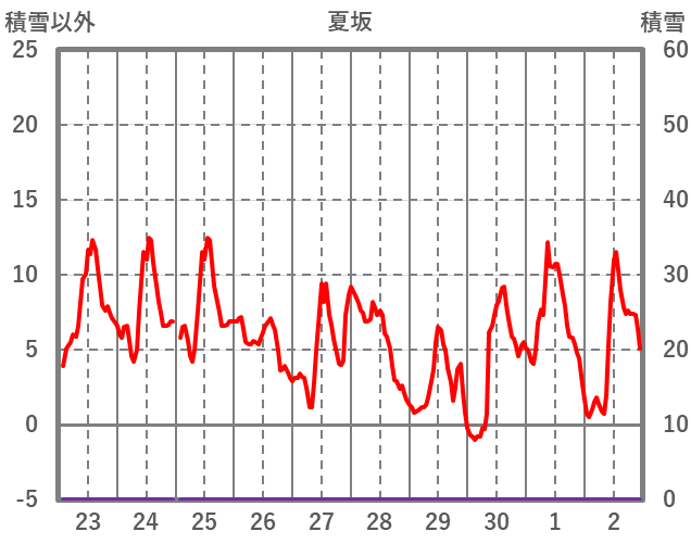 | 日 | 時 | 気温 | 降水 | 風向/風速 | 日照 | 積雪 | 降雪 |
