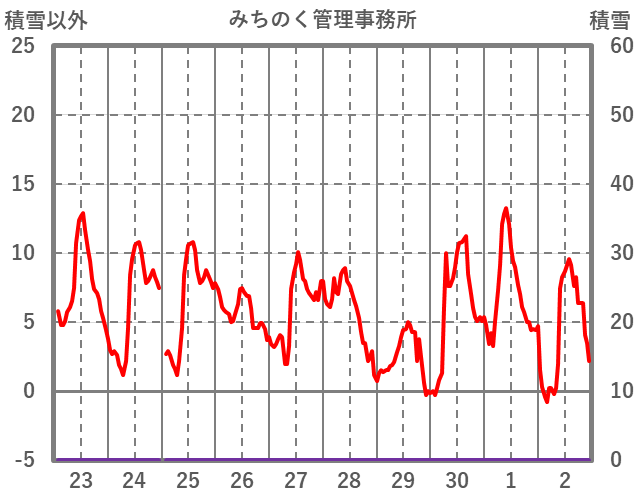 | 日 | 時 | 気温 | 降水 | 風向/風速 | 日照 | 積雪 | 降雪 |