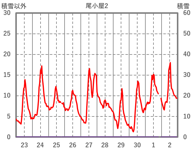 | 日 | 時 | 気温 | 降水 | 風向/風速 | 日照 | 積雪 | 降雪 |