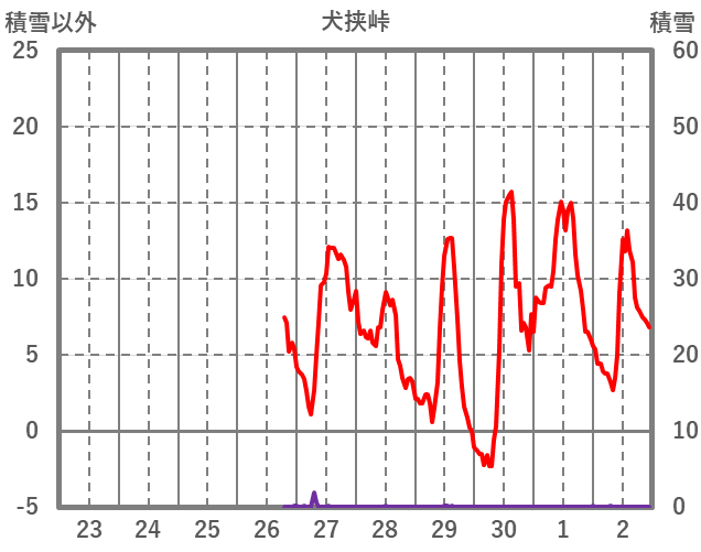 | 日 | 時 | 気温 | 降水 | 風向/風速 | 日照 | 積雪 | 降雪 |