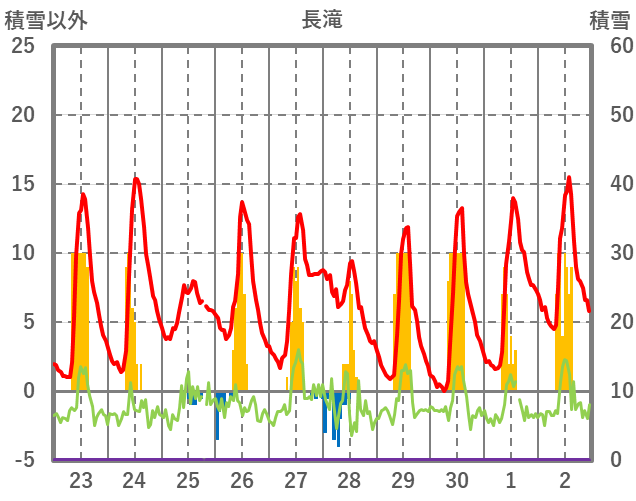 | 日 | 時 | 気温 | 降水 | 風向/風速 | 日照 | 積雪 | 降雪 |