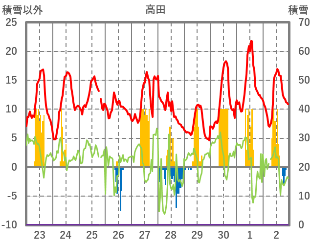 | 日 | 時 | 気温 | 降水 | 風向/風速 | 日照 | 積雪 | 降雪 |