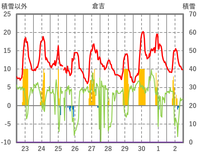 | 日 | 時 | 気温 | 降水 | 風向/風速 | 日照 | 積雪 | 降雪 |