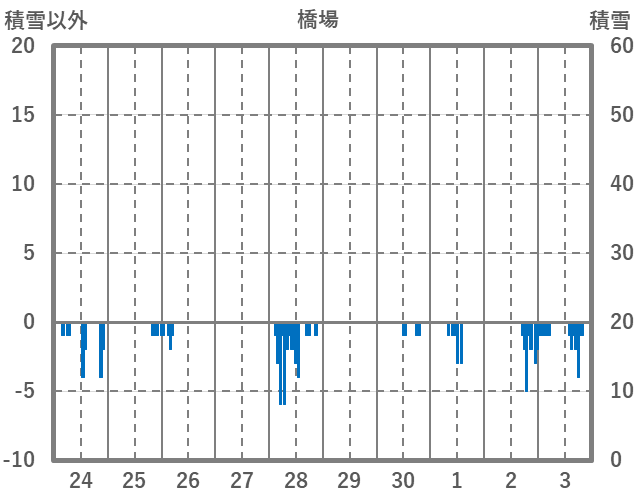 | 日 | 時 | 気温 | 降水 | 風向/風速 | 日照 | 積雪 | 降雪 |