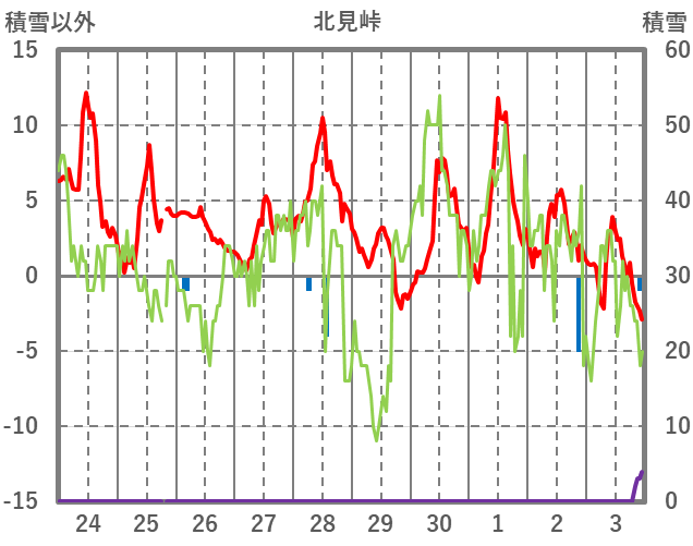 | 日 | 時 | 気温 | 降水 | 風向/風速 | 日照 | 積雪 | 降雪 |