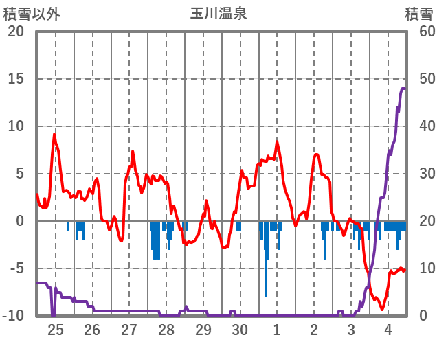 | 日 | 時 | 気温 | 降水 | 風向/風速 | 日照 | 積雪 | 降雪 |