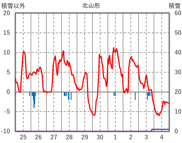 | 日 | 時 | 気温 | 降水 | 風向/風速 | 日照 | 積雪 | 降雪 |
