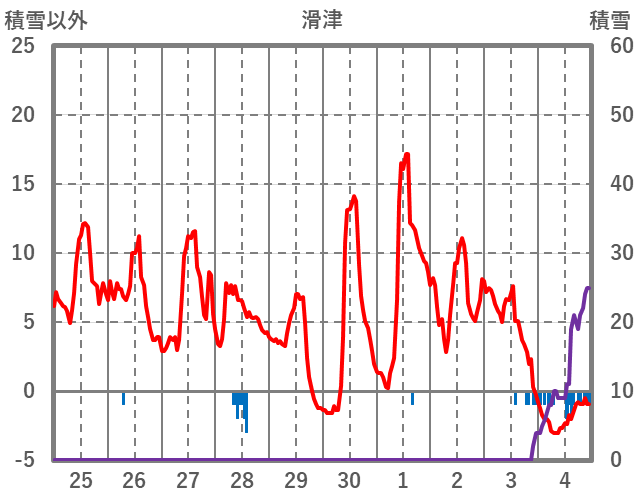 | 日 | 時 | 気温 | 降水 | 風向/風速 | 日照 | 積雪 | 降雪 |