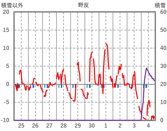 | 日 | 時 | 気温 | 降水 | 風向/風速 | 日照 | 積雪 | 降雪 |
