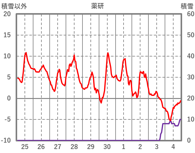 | 日 | 時 | 気温 | 降水 | 風向/風速 | 日照 | 積雪 | 降雪 |