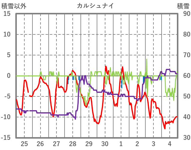 | 日 | 時 | 気温 | 降水 | 風向/風速 | 日照 | 積雪 | 降雪 |
