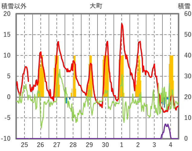 | 日 | 時 | 気温 | 降水 | 風向/風速 | 日照 | 積雪 | 降雪 |