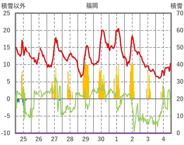 | 日 | 時 | 気温 | 降水 | 風向/風速 | 日照 | 積雪 | 降雪 |