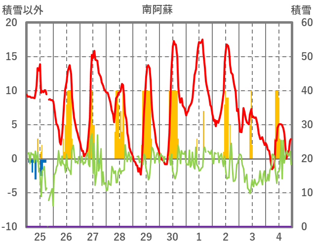| 日 | 時 | 気温 | 降水 | 風向/風速 | 日照 | 積雪 | 降雪 |