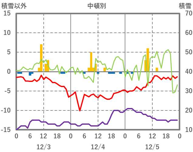 | 日 | 時 | 気温 | 降水 | 風向/風速 | 日照 | 積雪 | 降雪 |