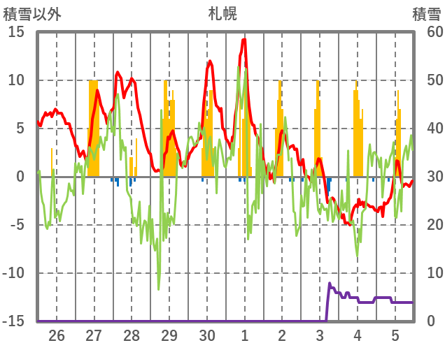 | 日 | 時 | 気温 | 降水 | 風向/風速 | 日照 | 積雪 | 降雪 |