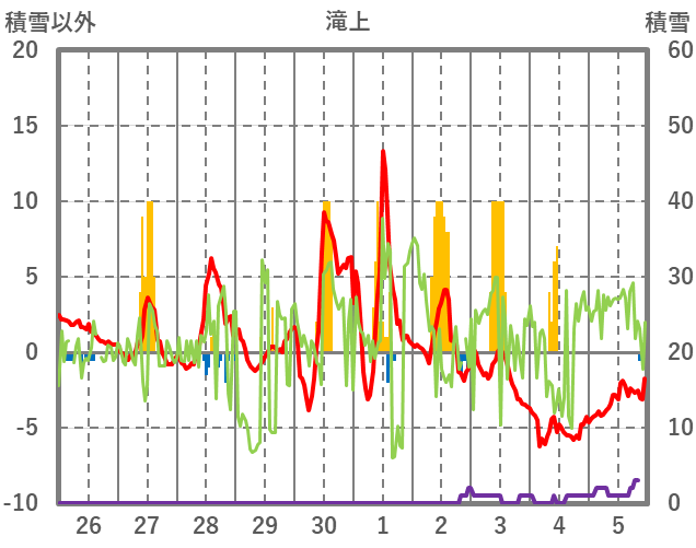 | 日 | 時 | 気温 | 降水 | 風向/風速 | 日照 | 積雪 | 降雪 |