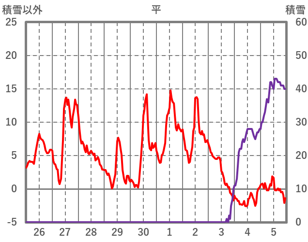| 日 | 時 | 気温 | 降水 | 風向/風速 | 日照 | 積雪 | 降雪 |