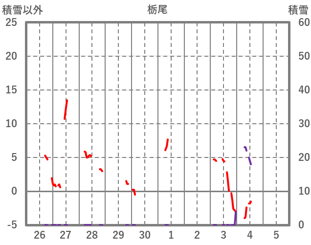 | 日 | 時 | 気温 | 降水 | 風向/風速 | 日照 | 積雪 | 降雪 |