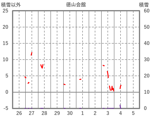 | 日 | 時 | 気温 | 降水 | 風向/風速 | 日照 | 積雪 | 降雪 |